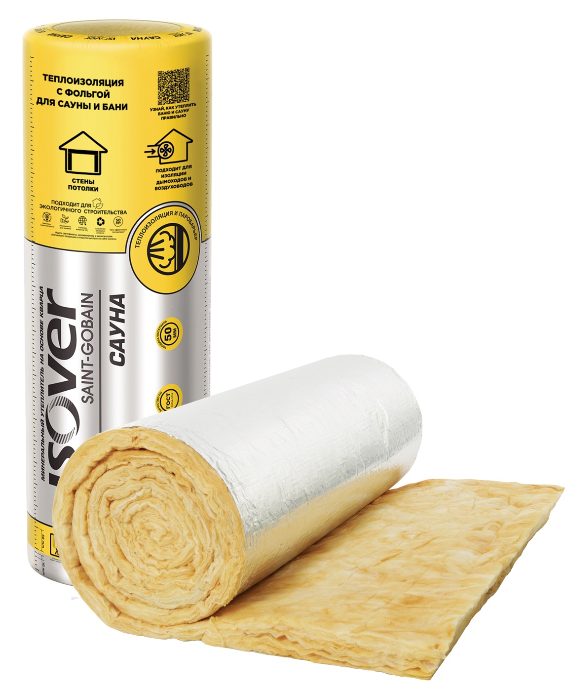 Утеплитель и пароизоляция Vetonit/ISOVER Сауна 50х1200х12500мм рулон (1шт/15м2/0,75м3) в Майкопе | Купить по цене 3 589.16 руб., доставка — Принеси Подай